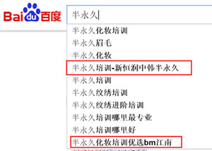 当潜在客户在百度/360/搜狗/UC神马/)搜索框输入“关键词”,下拉会出现“关键词+品牌名”,如下图: